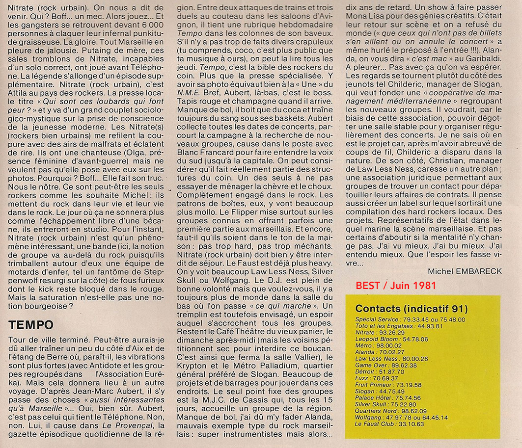---- VILLES & REGIONS ---- AMBITIEUX ---- AVANT POST ---- BOOTLEGGERS ---- CINQ GENTLEMEN ---- COPS AND ROBBERS ---- DETROIT --- - FEED-BACK ---- FIN DE SIÈCLE ---- FUZZ ---- LAWLESSNESS ---- LEDA ATOMICA ---- LORELEI ---- Olivier LORQUIN ---- MARTIN DUPONT ---- NITRATE ---- QUARTIERS NORD ---- SEATON ---- SILVER SKULL ---- SEPHER ---- SPECIAL SERVICE ---- SLOGAN ---- SPOILER ---- TERRIFIKS FRENCHIES ---- VENIN ---- WARRIOR KIDS ---- WILD CHILD